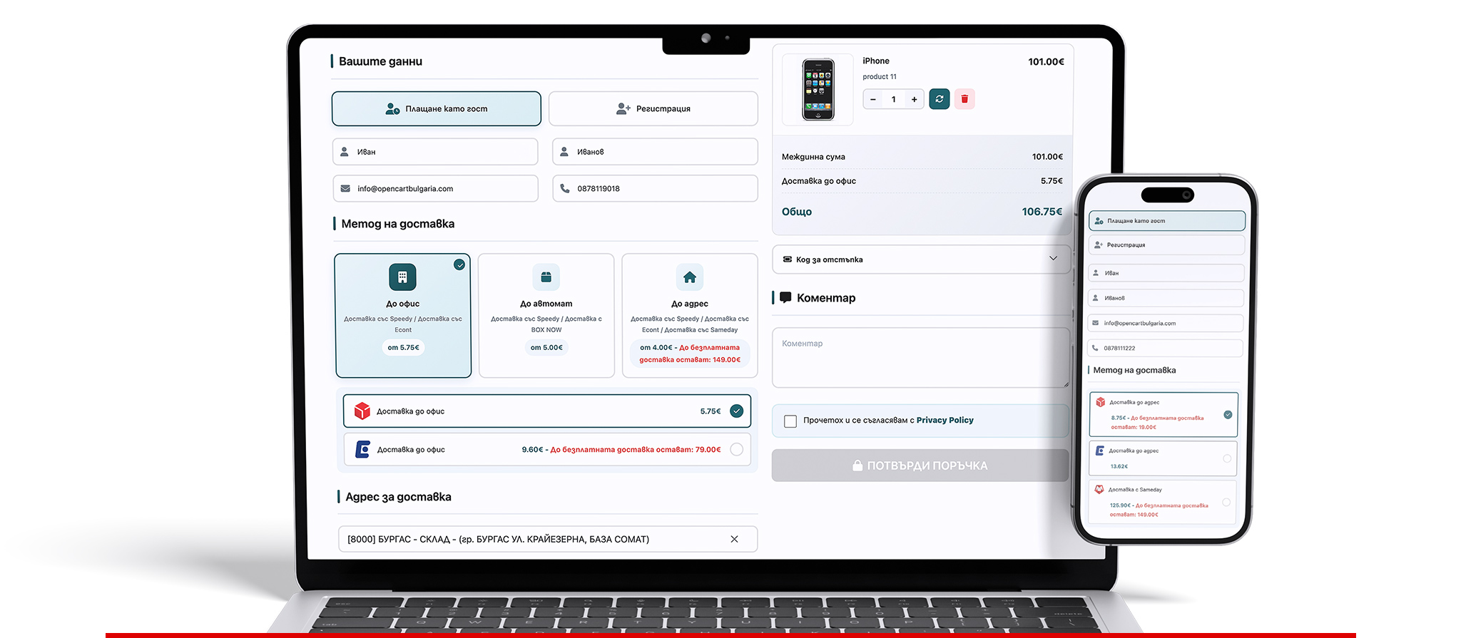 Пълна интеграция с популярните куриери в България – Еконт Експрес, Speedy и още...