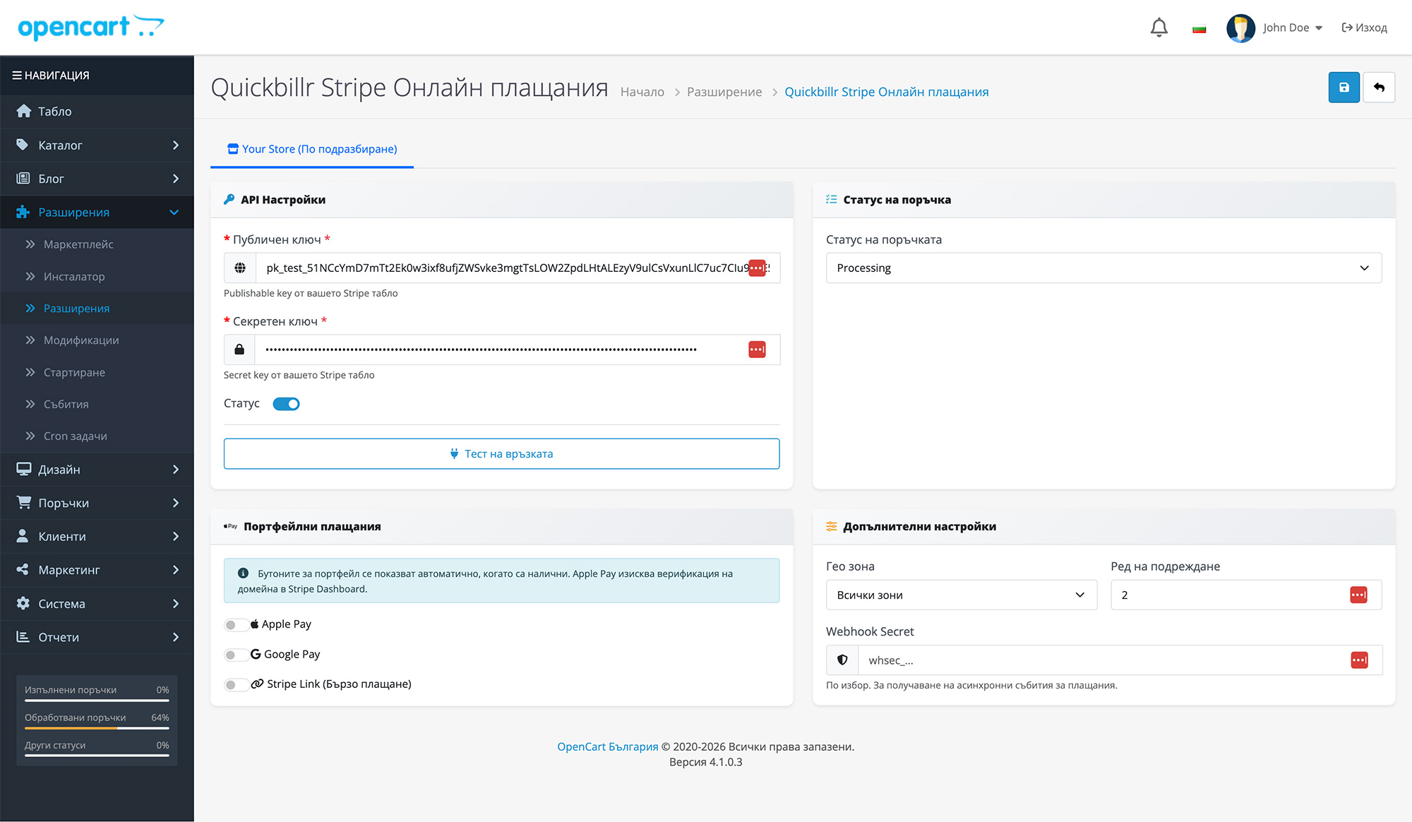 Интеграция със Stripe за OpenCart 4